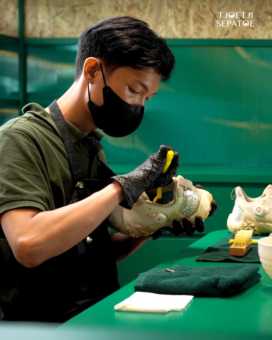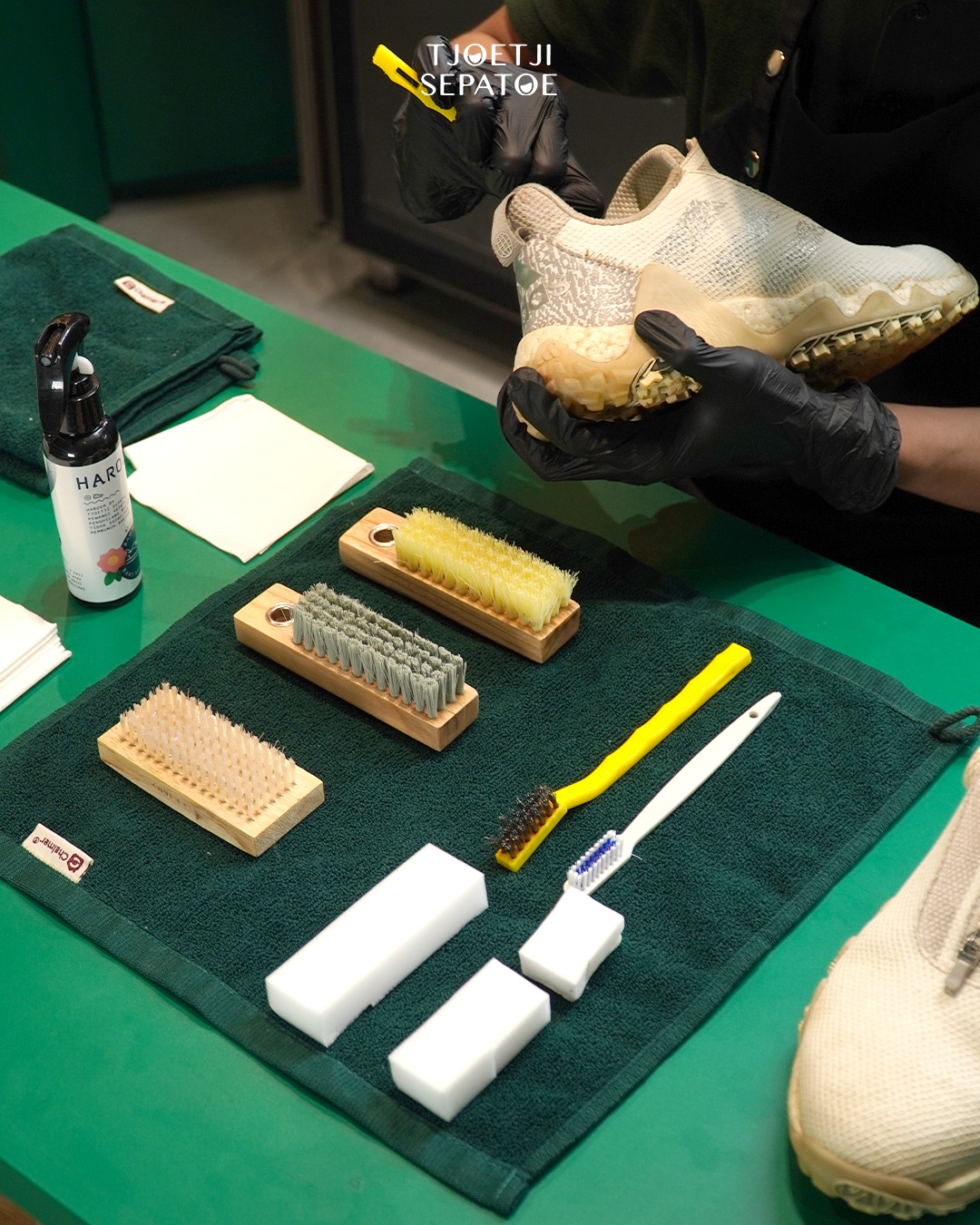 Tjoetji Sepatoe is a premium shoe care and repair service based in Jakarta, offering top-tier cleaning, recoloring, and refurbishment for all types of footwear—canvas, leather, suede, nubuck—as well as accessories like bags, sandals, and hats. They use high-quality imported Crep cleaning tools from the UK and provide solutions for even the most challenging shoe issues.